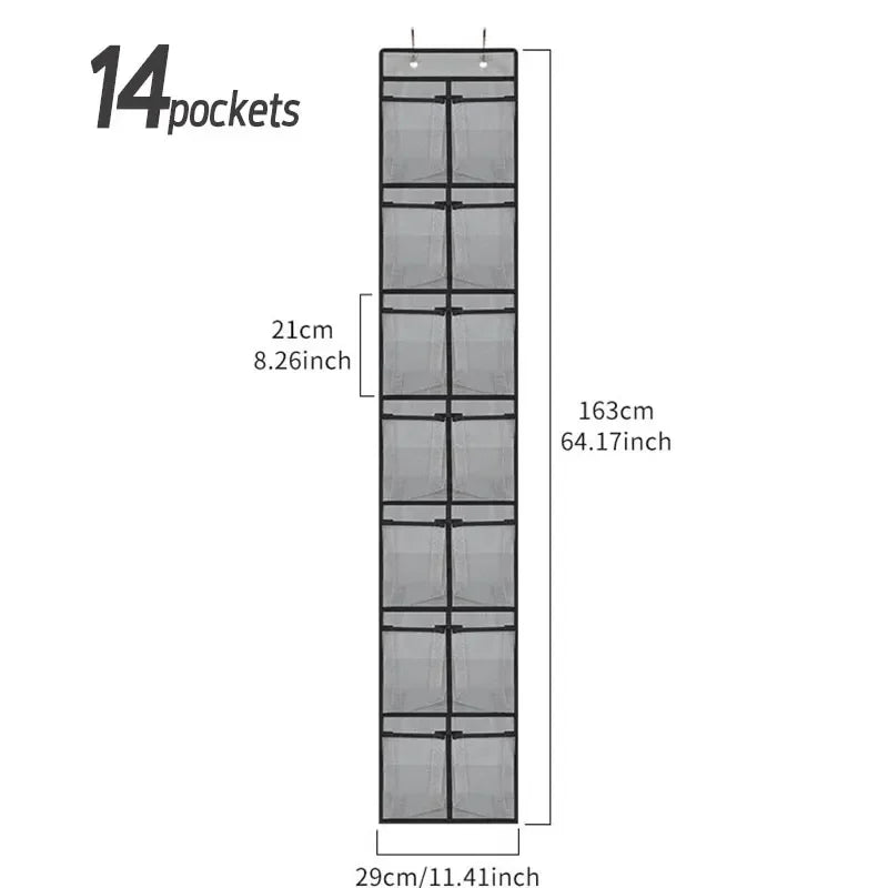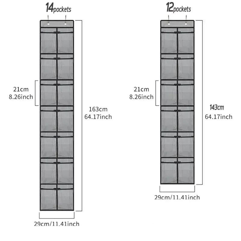 Not only does the Hanging Shoe Rack provide an efficient way to store your shoes, but it also eliminates the clutter of piles of footwear scattered around the room. The over-the-door hanging feature means no drilling or assembly is required, and it can be easily relocated if needed. Whether you choose the 12 or 14-pocket version, this versatile shoe rack is an excellent choice for keeping your space organized and clutter-free. Say goodbye to the mess and hello to a more organized, functional room with the Hanging Shoe Rack—an easy, stylish, and practical storage solution.